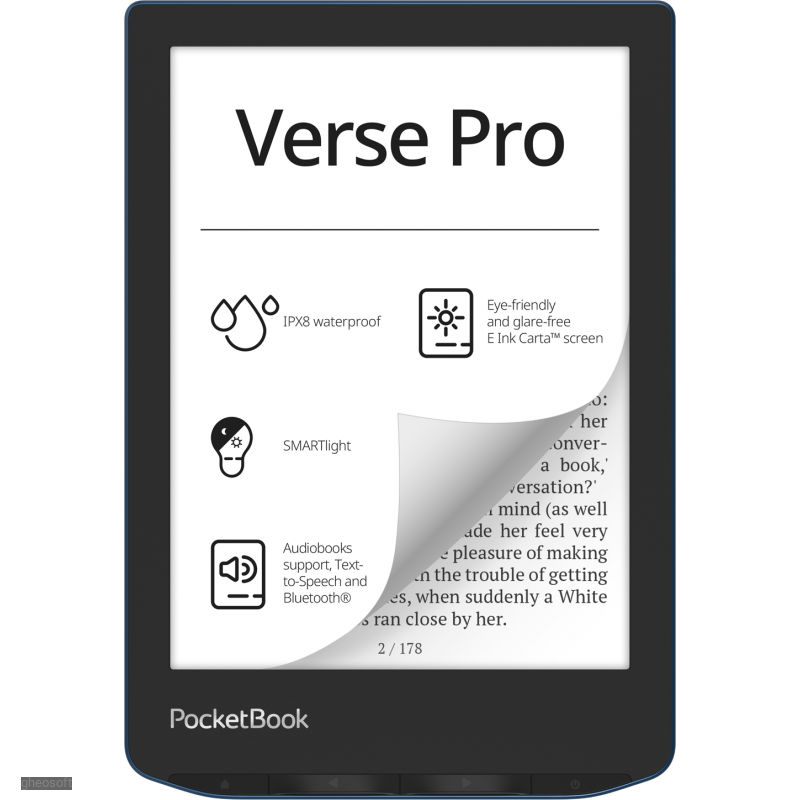PocketBook 634 Verse Pro – самый совершенный 6-дюймовый ридер в нашей линейке 2023-2024. Устройство получило плеер для музыки и аудиокниг, функцию Text-to-Speech, экран высокого разрешения и защиту от воды по IPX8.